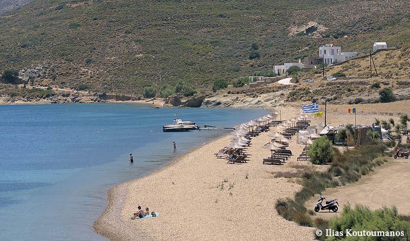 Οργανωμένη, αμμουδερή παραλία, με αλμυρίκια, ταβέρνες beach bar, νεανική ατμόσφαιρα και θαλάσσια σπορ. Βρίσκεται 4χλμ. βορειοανατολικά από την Σκάλα (35-40 λεπτά πεζή) και φημίζεται για τα καθαρά – σχετικά αβαθή – νερά της.